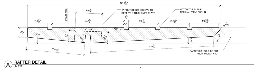 A large park was being built needing a lot of Ipe. Specifically, bridges, seating, pergola and so forth. Almost everything had custom milled sizes and angles. Each piece of Ipe in the benches was custom milled. The handrails were custom milled. Each rafter had unique angle components. Below is a story of just the rafters.