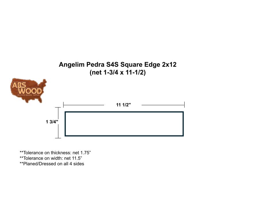 Angelim Pedra S4S Square Edge 2×12 (net 1-3/4 x 11-1/2)